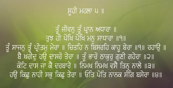 4 Responses to Tu Jewan Tu Paran Adhara..ਤੂੰ ਜੀਵਨੁ ਤੂੰ ਪ੍ਰਾਨ ਅਧਾਰਾ ਤੁਝ ਹੀ ਪੇਖਿ ਪੇਖਿ ਮਨੁ ਸਾਧਾਰਾ