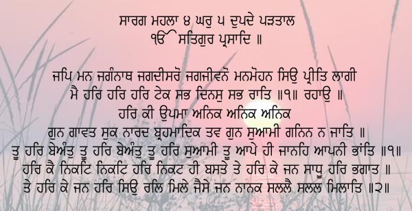 7 Responses to Jap Man Jagannath Jagdishro-Raga Sarang..ਜਪਿ ਮਨ ਜਗੰਨਾਥ ਜਗਦੀਸਰੋ ਜਗਜੀਵਨੋ – ਰਾਗ ਸਾਰਗ