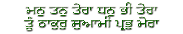 7 Responses to Man Tan Tera Dhan Bhe Tera..ਮਨੁ ਤਨੁ ਤੇਰਾ ਧਨੁ ਭੀ ਤੇਰਾ ਤੂੰ ਠਾਕੁਰੁ ਸੁਆਮੀ ਪ੍ਰਭੁ ਮੇਰਾ