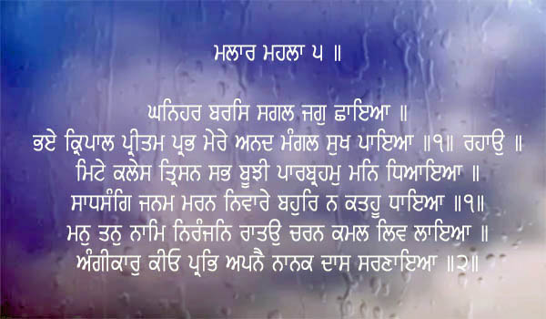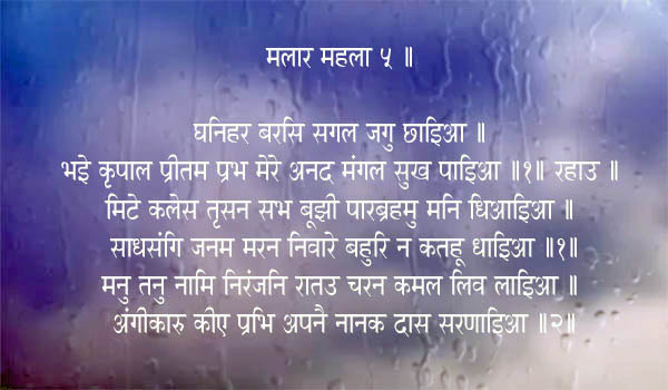 Another Shabad in Raag Malhar: Baras Ghana Mera Pir Ghar Aya – Raga Malhar ~ ਬਰਸੁ ਘਨਾ ਮੇਰਾ ਪਿਰੁ ਘਰਿ ਆਇਆ