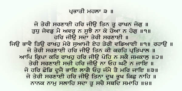 Shabad Audio: Har Jeeo Sada Taeree Sharanaee … Raag Prabhati